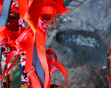 Red shoddies or rags or ropes.