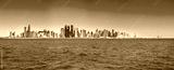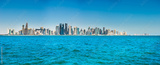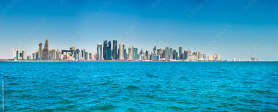 Panorama of city of Doha, Qatar downtown with skyscrapers, view from sea bay