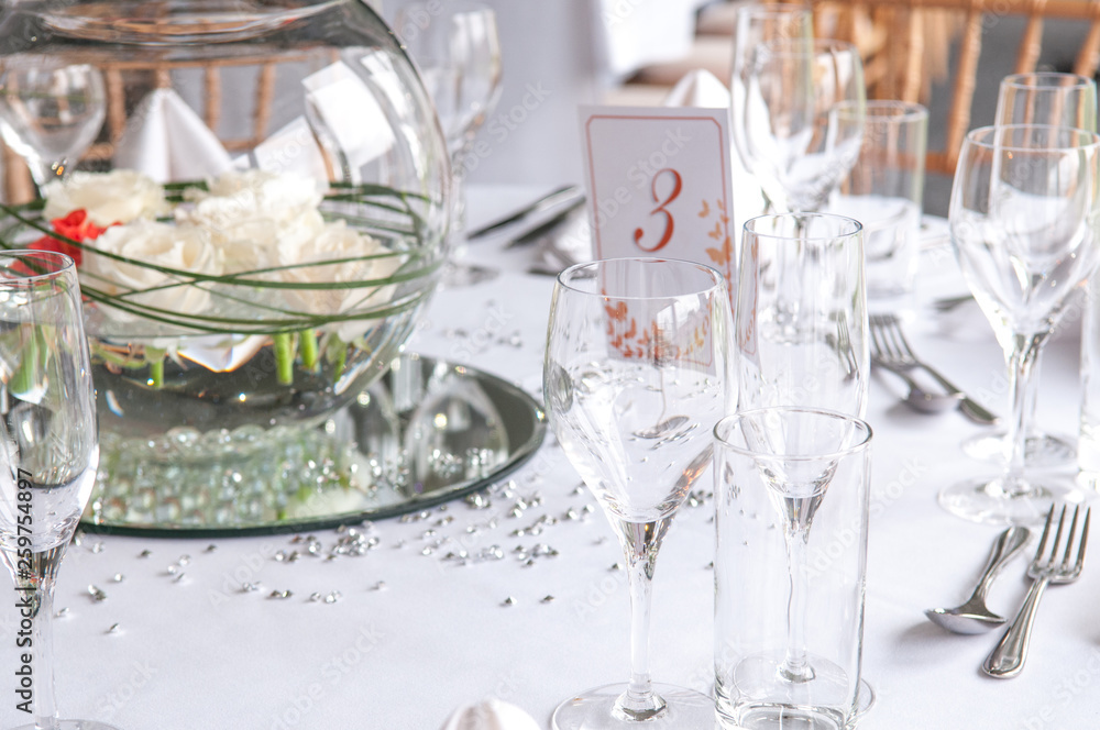 Beautiful wedding table decoration for wedding reception guests