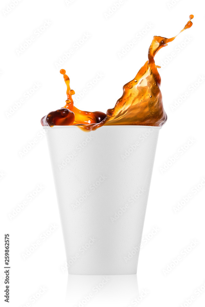 Coffee splash in white disposable glass