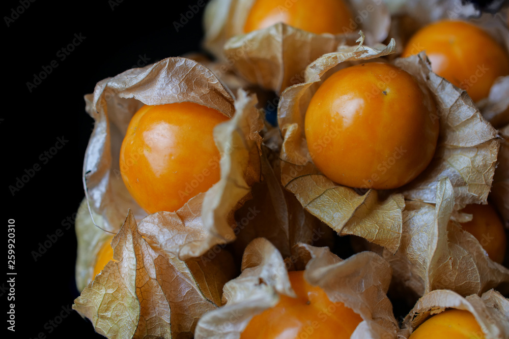 cape gooseberry on black
