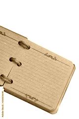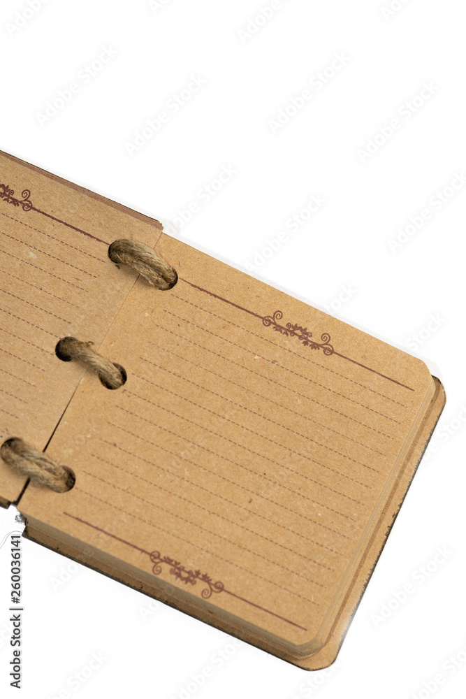 Old retro dirty paper notebook isolated above white background. Copy space on the old paper notebook above white background.