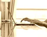 Digital lifestyle blog writer or business person using computer devices working on internet communication technology .
