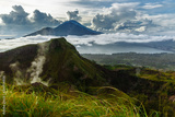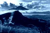 Active Indonesian volcano Batur in the tropical island Bali. Indonesia. Batur volcano sunrise serenity. Dawn sky at morning in mountain. Serenity of mountain landscape, travel concept