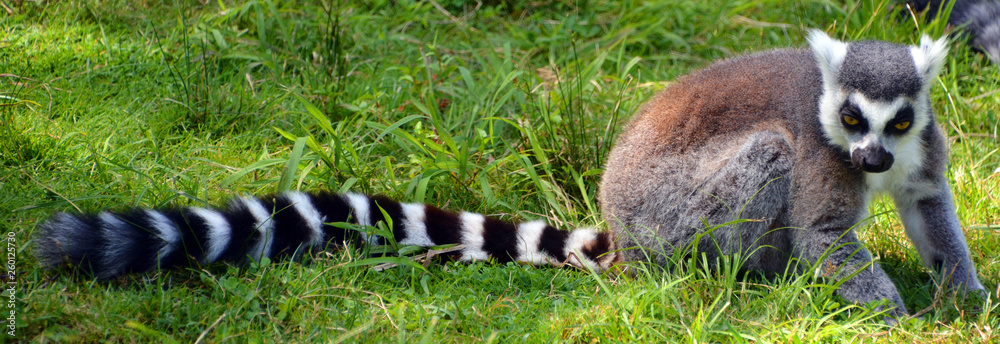 The ring-tailed lemur (Lemur catta) is a large strepsirrhine primate and the most recognized lemur due to its long, black and white ringed tail.