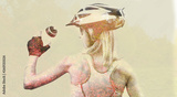 Double exposure woman cyclist. Combined with a nature. Concept Healthy lifestyle in the nature.