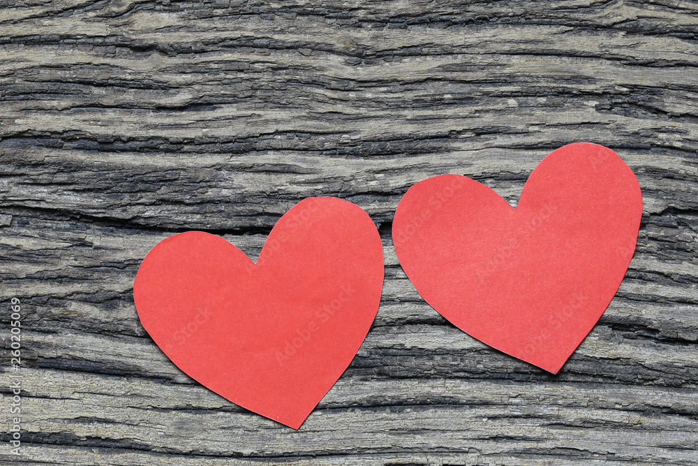 Red Heart paper on the wooden floor and have copy space for design in your love or Valentine day Concept.