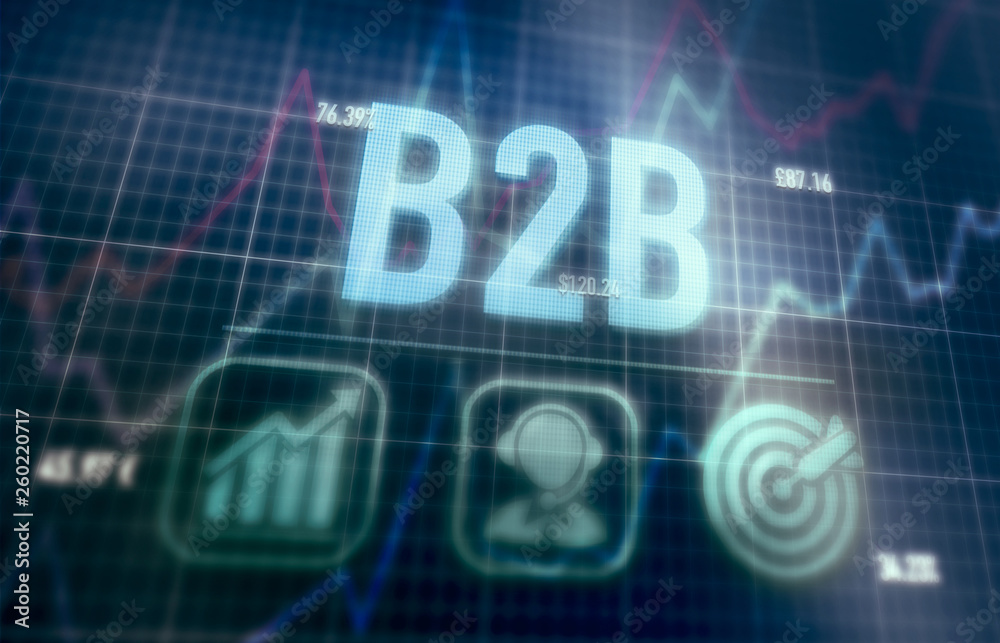 B2B concept on a blue dot matrix computer display.
