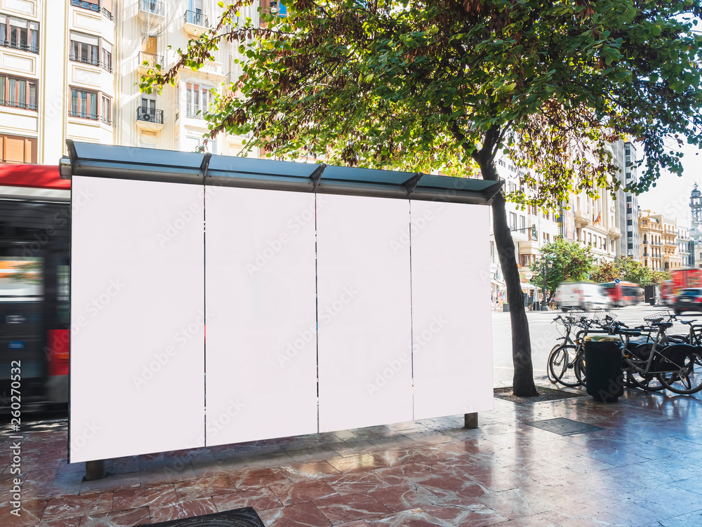 Mock up Banners template at Bus station Advertising Media outdoor Sign in street city