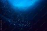 lot of small fish in the sea under water / fish colony, fishing, ocean wildlife scene