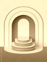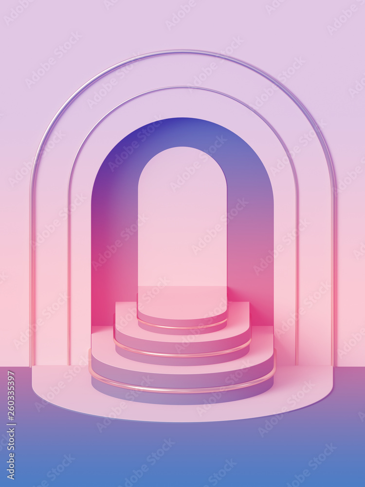 3d render, abstract geometric background, art deco shop display in pastel colors, fashion podium, blank mock up template, minimalistic empty showcase, primitive arch shapes, niche