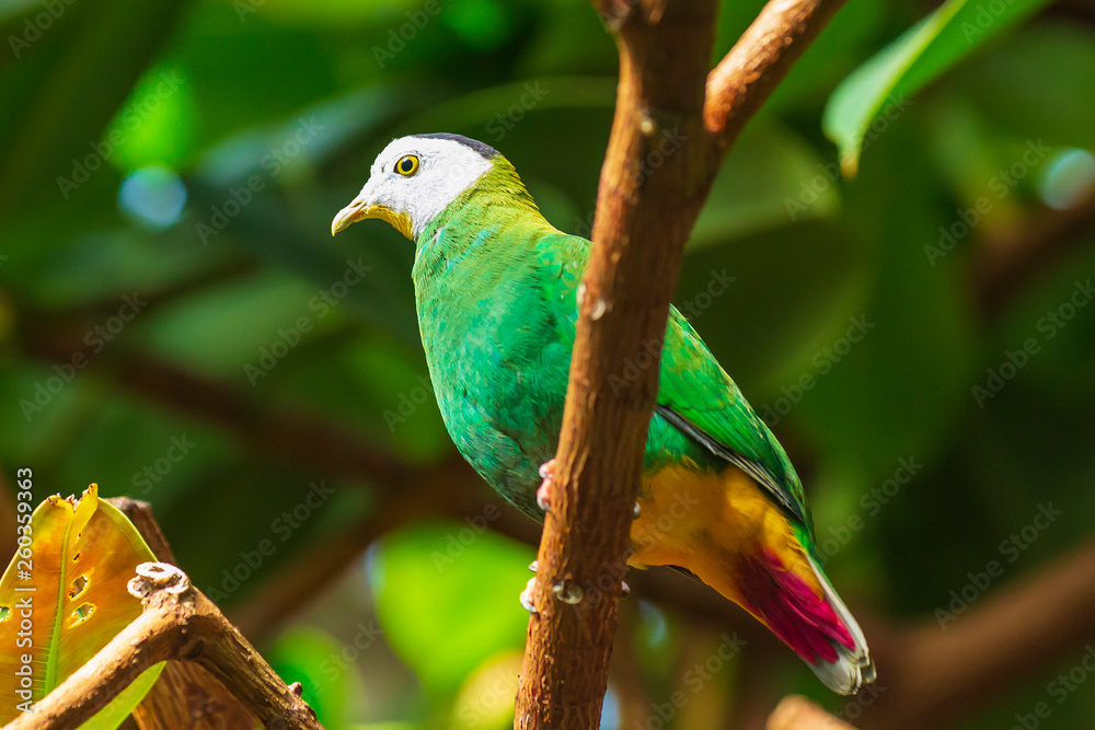 Exotic black-naped fruit dove Ptilinopus melanospilus