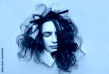 A funny teenage sad girl with problematic curly hair expresses displeasure on her face. Two combs tangled in hard hair.