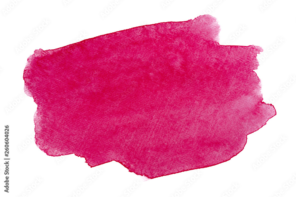 Watercolor stain on white background isolated. Element with paint and watercolor paper texture. Background for design of postcards and print.