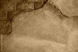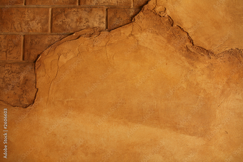 cracking wall with bricks showing