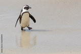 African penguin, jackass penguin, black-footed penguin (Spheniscus demersus), walking on beach, Boulder beach, South Africa