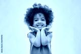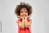 childhood and people concept - happy little african american girl over grey background