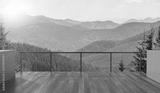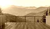 Balcony view of mountains. Landscape. Sunny Day. Terrace with a beautiful view. Background with beautiful landscape.