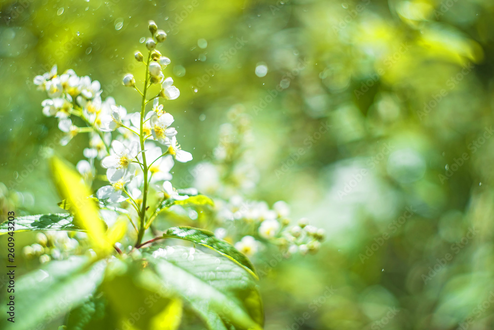 Blossoming bird cherry. Flowers bird cherry tree.