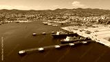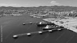 Aerial drone photo of famous port of Lavrio in South Attica where passenger ships travel to popular Aegean destinations, Greece