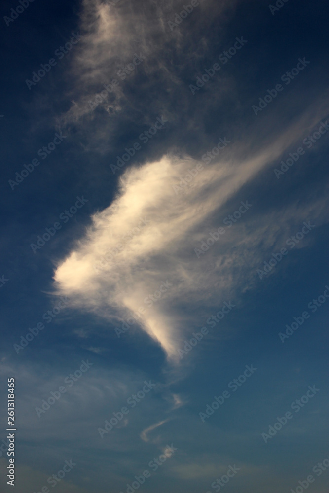 Cloudscape background of fine wispy cloud in a funnel shape against blue sky