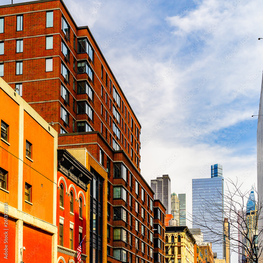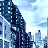 A brownstone corner apartment building in Manhattan, New York City.