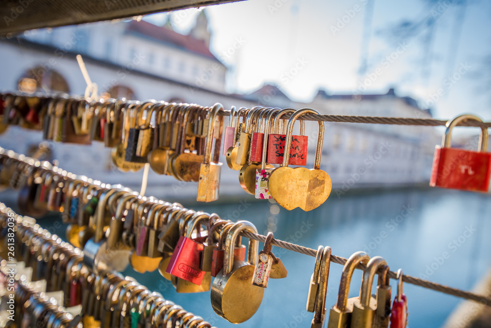 Love locks on a bridge in Europe. Ljubljana , Slovenia