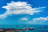 Luxury cruse ships with summer blue sky with big cloud background