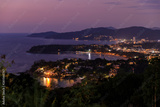 Aerial scenic view over beautiful Andaman sea and 3 bays at Karon Viewpoint, Phuket, Thailand