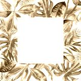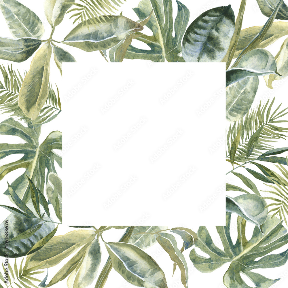 Square Wild Flowers animal skin print, tropical leaves Square Frame. Exotic floral Wreath. Palm Leaves Border