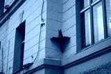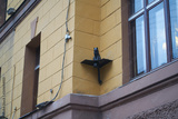 statue of a cat on the wall, near the window. Sight of St. Petersburg