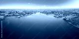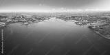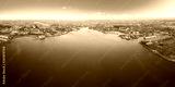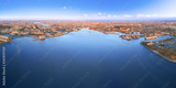 Panoramic aerial view of the seaside of Saint Petersburg, Russia at sunset