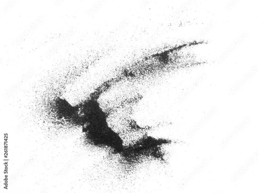 Pile black sand isolated on white background. Sand dune with clipping path. Sand dunes isolated on white background. Sand beach texture.
