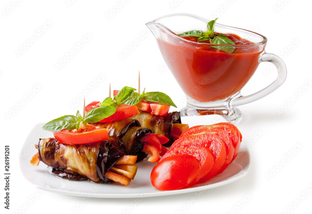 Eggplant rolls stuffed with pepper