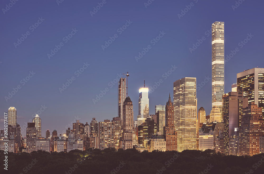 Manhattan Upper East Side at dusk, color toning applied, NYC.