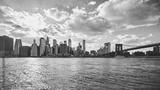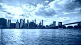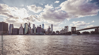 New York City skyline at sunset, color toning applied, USA.
