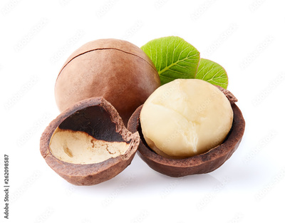 Macadamia nuts with leaves