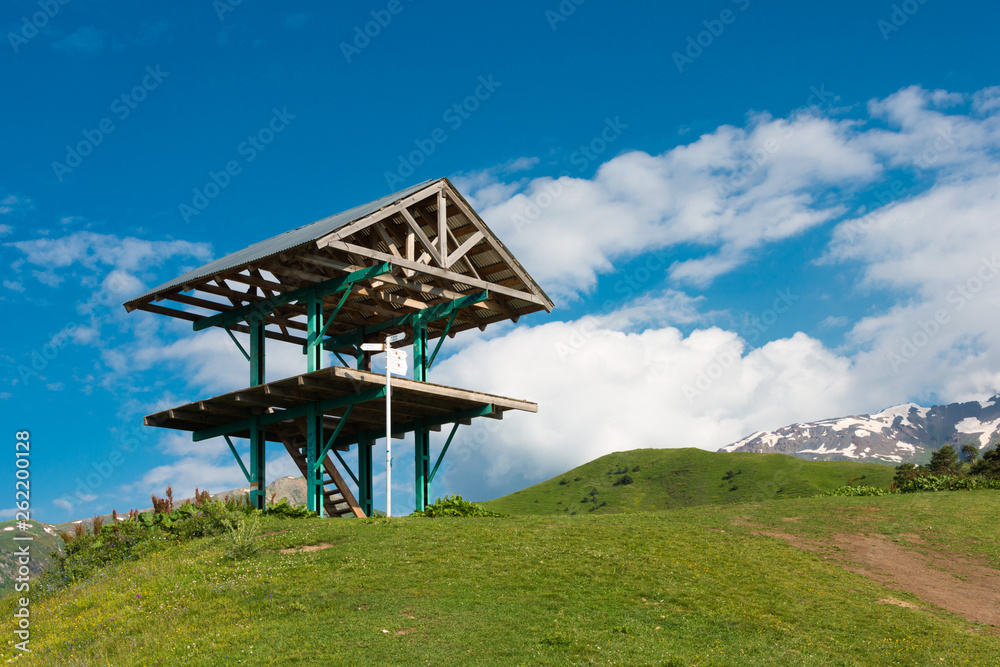 Mestia, Georgia - Jun 25 2018: Hiking trail leading from Mestia to Koruldi lakes. a famous landscape in Mestia, Samegrelo-Zemo Svaneti, Georgia.