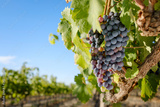 Mourvedre red wine grapes ripening in vineyard on a sunny day