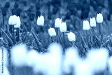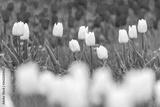 white tulips on a background of red tulips
