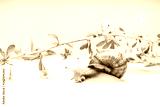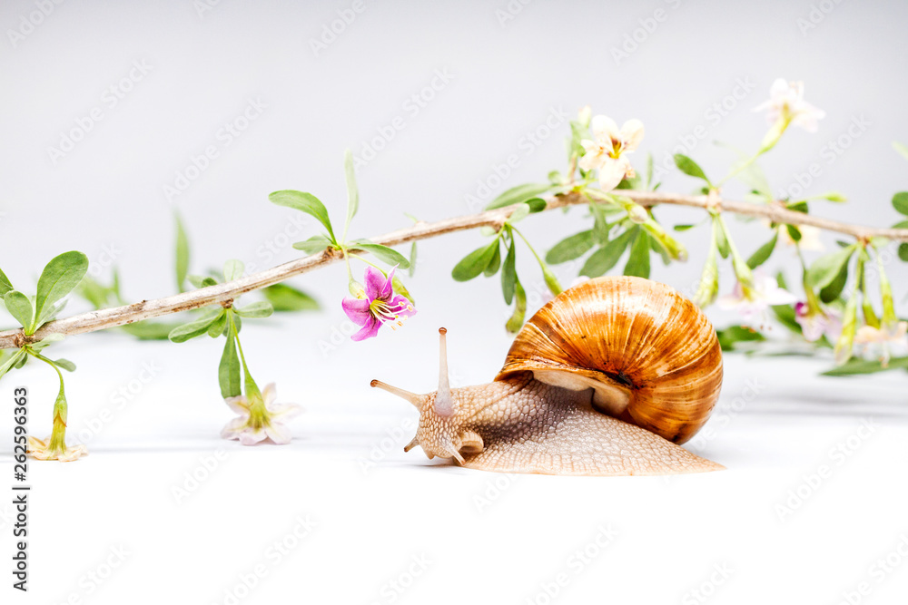 goji flowers and snail on white background