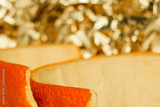 Yellow background with orange peel and bokeh