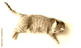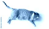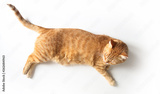 Ginger cat lying on a white table. Cute cat with green eyes. At the veterinarian. Top view