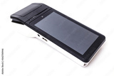 Online cash register on a white background. Banking equipment. Acquiring. Acceptance of bank credit cards.