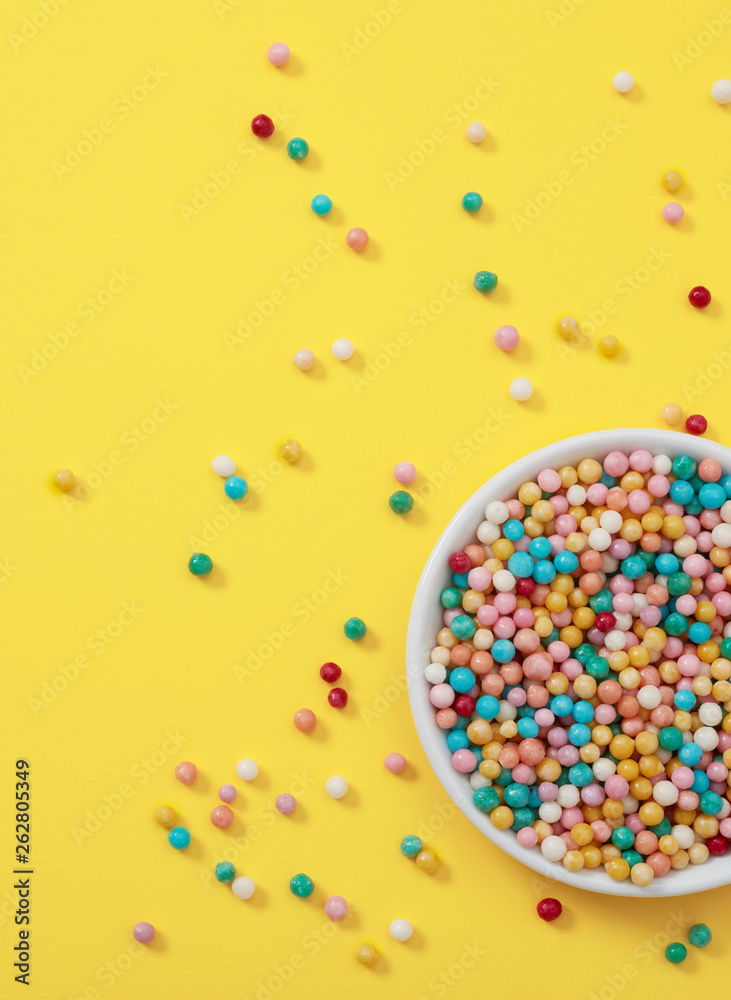 Sprinkles spilled on yellow background