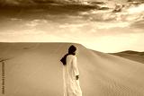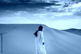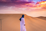 Berber man wearing traditional tuareg clothes in the Sahara Desert at dawn, Merzouga, Morocco