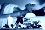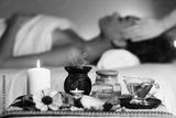 African woman having face massage, relaxing in spa salon
