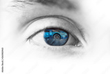 female eye with a reflection of the car inside the eye, driving and travel abstraction