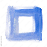 Watercolor geometric hand-drawn square blue dry brush painted symbol on paper. Isolated on white.