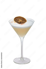 pisco sour cocktail based on schnapps, egg withe and lemon on isolated background